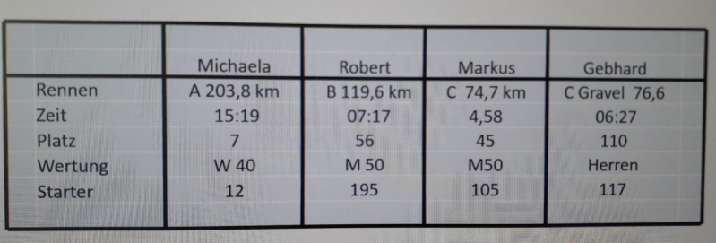Präsident am Start. Gerry erreichte in seiner Kategorie Rang 3, Gustl wird immer besser und kam in seiner Kategorie auf Rang 4 und unser Präsident Heinz fuhr mit seinen bekannten Problemen